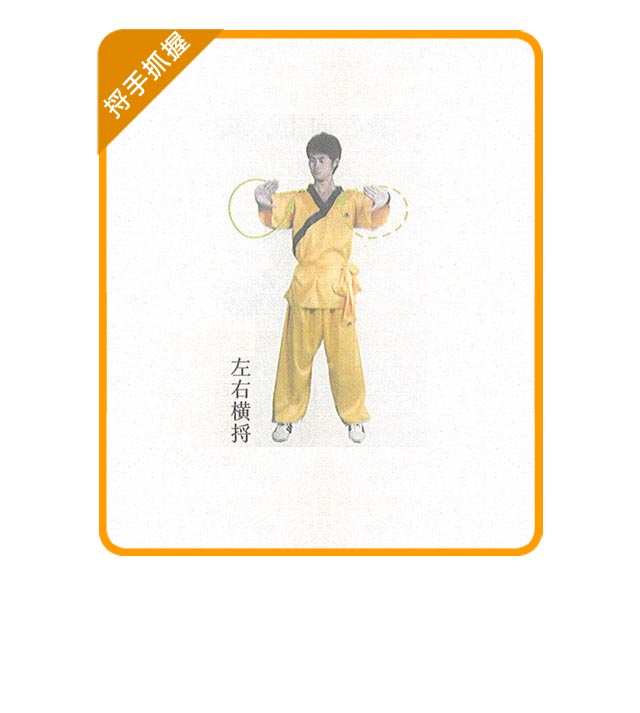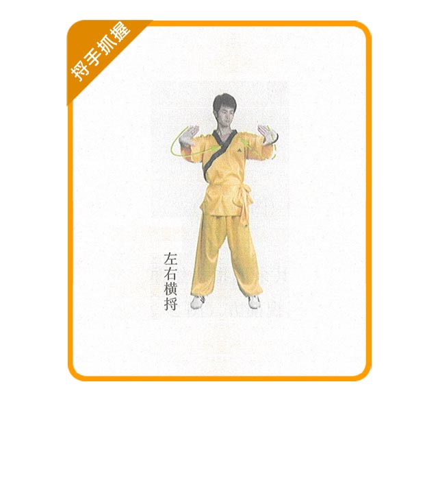 ②拇指张开,双掌向左右两侧横开将手眼随左手。