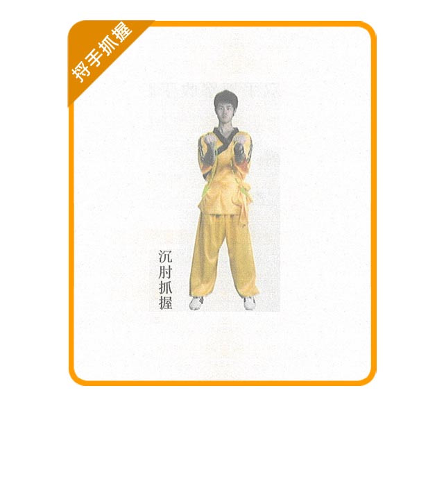 ③双臂沉肘,双手外旋抓握,拳心向上,目视前方。