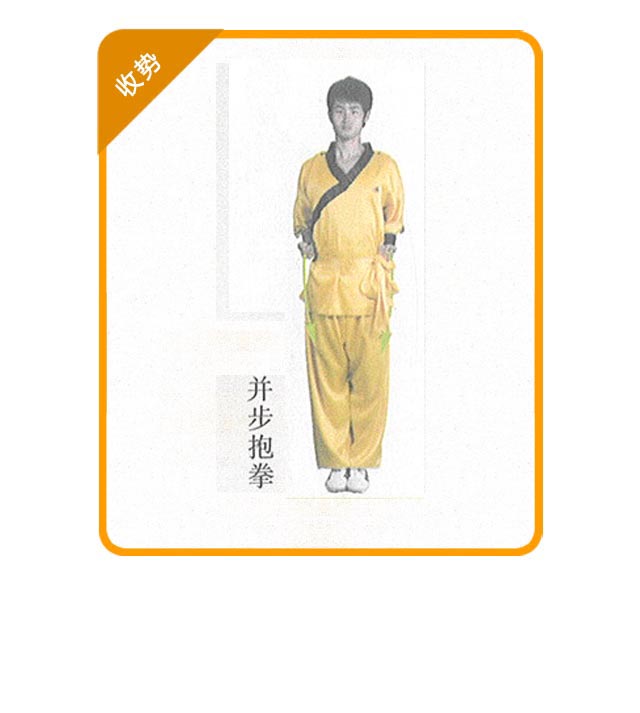 ⑧右脚并左脚,双臂屈肘,双拳收至腰间,目视前方。