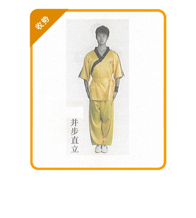 左脚并右脚,双臂屈肘,双拳收至腰间。