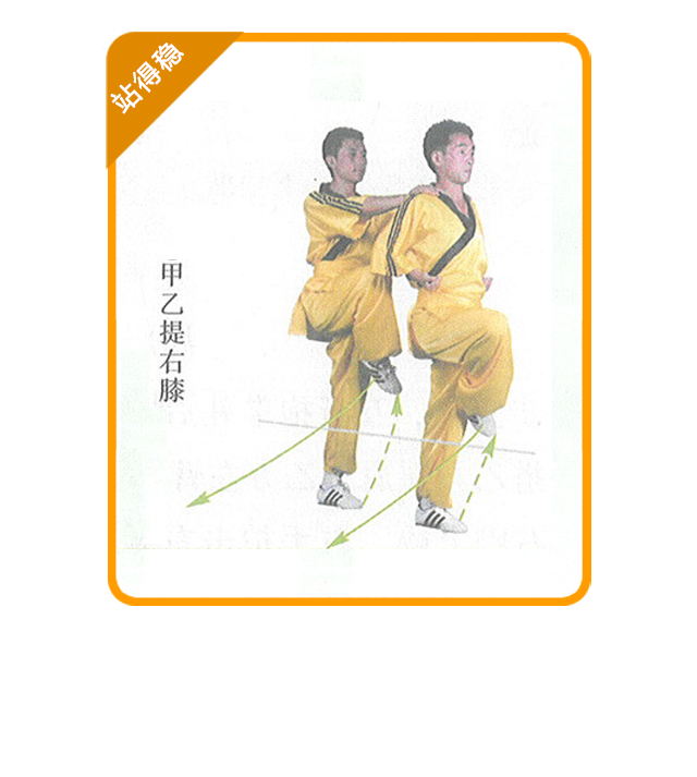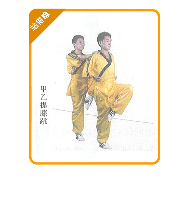 (2) 练习要求:提膝腿要尽量高抬,跨跳要轻灵。